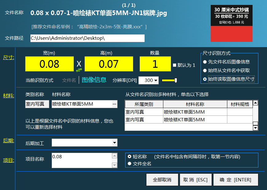 飛揚(yáng)動(dòng)力廣告公司管理軟件可以直接將客戶所需要開單的圖片直接拖到軟件中,就可以直接進(jìn)行開單了,飛揚(yáng)動(dòng)力廣告公司管理軟件可以自動(dòng)識(shí)別出圖片的寬、高、材料信息等,這樣,在開單的時(shí)候就會(huì)變得非常簡單,方便廣告公司快速開單實(shí)現(xiàn)管理。