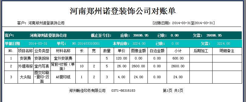 暢佳公司是一家印刷業(yè)務(wù)為主,同時(shí)又承接廣告設(shè)計(jì),加工,制作等業(yè)務(wù)的公司,有很多固定的客戶,每月都會(huì)給公司下訂單,公司需要把這么多的客戶每月的下單量,收款情況,欠款情況用軟件管起來,同時(shí)這款軟件又能方便制單,因?yàn)榭蛻粝聠螘r(shí)可能會(huì)有多種業(yè)務(wù)類型,比如一筆室外大型海報(bào)業(yè)務(wù),可能分解下來的業(yè)務(wù)就會(huì)有設(shè)計(jì)、噴繪、制作、安裝、送貨等好幾項(xiàng),公司需要一個(gè)明細(xì)賬,而不是就記一筆總賬,這就對(duì)廣告下單軟件有了更高的要求,也就是軟件在一張單中支持錄入多條明細(xì),而這些明細(xì)支持按不同的計(jì)價(jià)方式計(jì)價(jià),比如按面積計(jì)價(jià)、按數(shù)量計(jì)價(jià)、按次數(shù)計(jì)價(jià)等。同時(shí)生成的每月對(duì)賬單中必須提供客戶的業(yè)務(wù)明細(xì),做了什么項(xiàng)目,數(shù)量是多少,尺寸是多少,加工費(fèi),安裝費(fèi)是多少。這樣在與客戶對(duì)賬過程中既能保證數(shù)據(jù)明確,又能體現(xiàn)公司的管理水平,提升在客戶心中的公司形象,最終暢佳試用了飛揚(yáng)動(dòng)力廣告公司管理軟件后,功能及價(jià)格方面都很滿意,最終與公司達(dá)成合作。