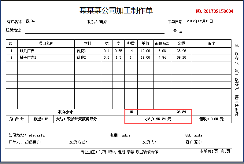 【廣告公司管理軟件單據(jù)打印】