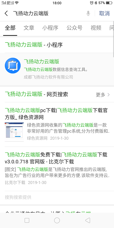 1.首先打開(kāi)微信,然后在搜索欄輸入“飛揚(yáng)動(dòng)力云端版”,如下圖所示: