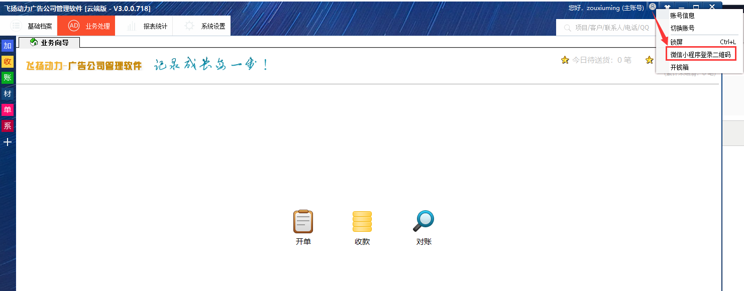 飛揚(yáng)動(dòng)力云端版,小程序已經(jīng)正式發(fā)布,那么我們?nèi)绾蝸?lái)登陸微信小程序,查看相關(guān)的賬目數(shù)據(jù)呢?