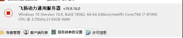 2.打開(kāi)飛揚(yáng)動(dòng)力服務(wù)器端,點(diǎn)擊下圖所示的服務(wù)端參數(shù)設(shè)置標(biāo)簽