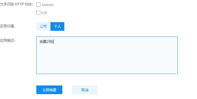 6.領(lǐng)取后,回到剛才的創(chuàng)建應(yīng)用頁面,輸入應(yīng)用名稱(可以隨便輸入),并在底部選擇“個人”,點(diǎn)“立即創(chuàng)建”