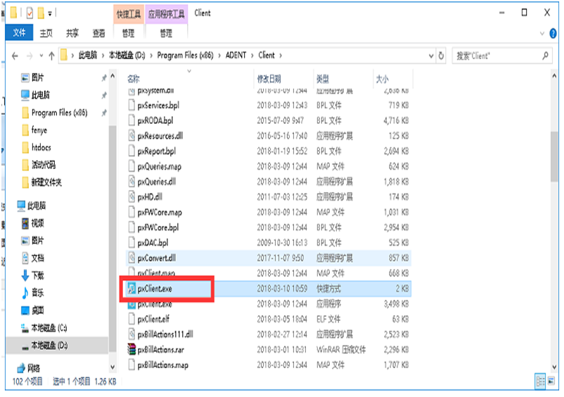 然后在路徑為D:\Program Files(x86)\ADSTART\Client的文件夾下,找到pxClient.exe這個文件,創(chuàng)建一個快捷方式,并放到系統(tǒng)桌面,如下圖所示: