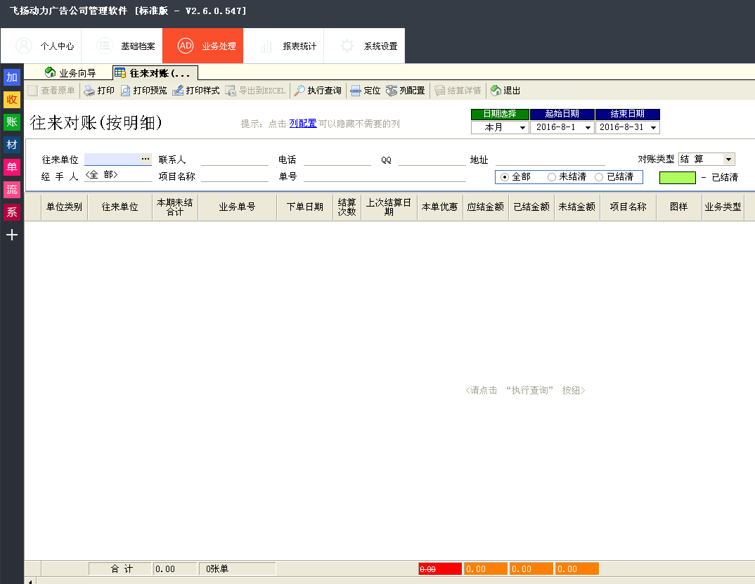 在以前開手工單據(jù)的時候,業(yè)務(wù)對賬是比較麻煩的,所以,飛揚(yáng)動力廣告公司管理軟件為了解決廣告公司的困擾